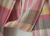 その質感を損なわないように、できるだけたて糸の張りをゆるくして、たてよこに交差する糸の膨らみを味わっていただけるように織りました。