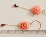 【14kgf】宝石質ロードライトガーネット・フリルローズピアス