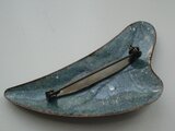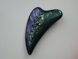 落ち着いたピンク色に夜空のような紺色と、2色が混ざった淡い紫色というニュアンスのある色合いが綺麗です。表面の細かい銀色も光り過ぎず上品ですね。個人的には星雲のような印象を受けました。素敵な作品をありがとうございます:)