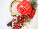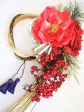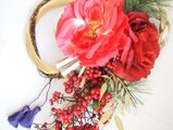 真っ赤な薔薇と牡丹をあしらったおしゃれなお正月飾りです。
