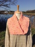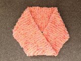 モコモコのソフトオレンジの毛糸で編んだスヌードです。