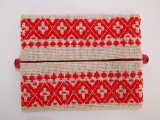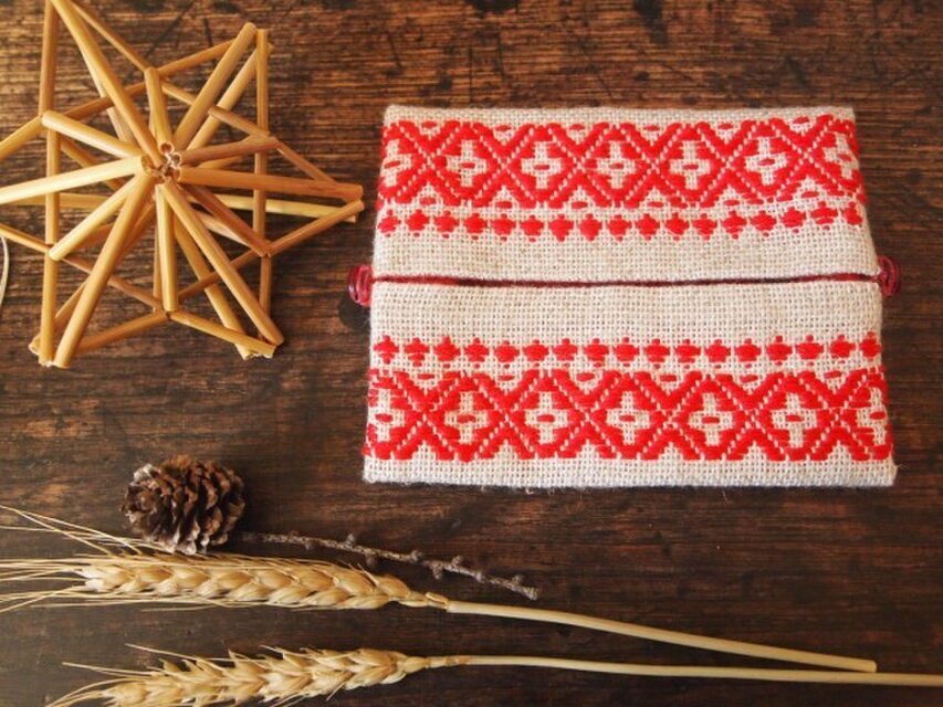 国産の麻布に津軽の伝統刺繍こぎん刺しのモドコ(モチーフ)を刺してポケットティッシュケースを作りました。