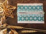 クリスマスをイメージし、伝統の模様から十字架と星の模様を選んで刺繍しました。