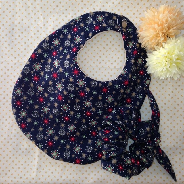 スタイの裏はランダムなドットのダブルガーゼでリバーシブルに仕上げました。