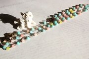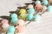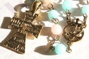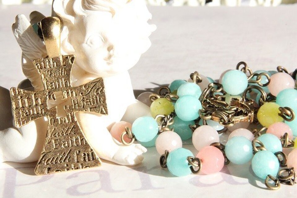 128面カットの石がキラキラと輝き、パステル調の色合いがとても可愛いロザリオです。