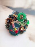 兄弟揃ってシブ好みです。イタリーやチェコの古いボタンにシックなトーンの小花をモリモリ散りばめて。
