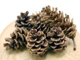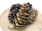 その色は、クロマツなど普通の松ぼっくりよりも明るめの淡褐色で、ストローブマツと同じように、松脂が豊富なので鱗片が白くなっているものが多いです。