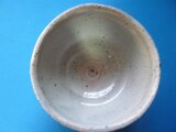 粉引の抹茶茶碗です。常滑のおぼろ土。白化粧をしてマット釉薬プラス透明釉薬をかけて表情を出しています。焼きの炎でほのかに赤みが出ています。
