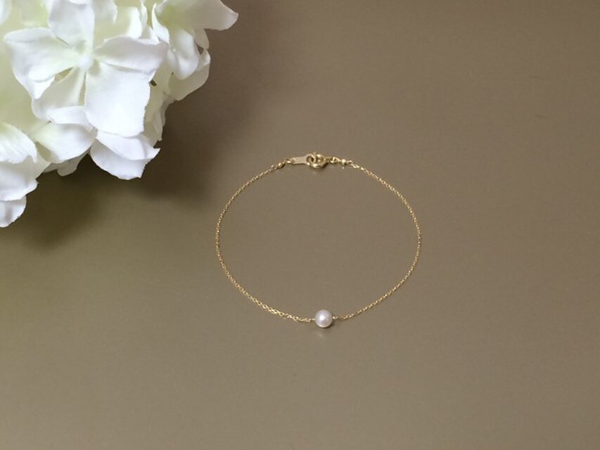 K18 あこやパールの一粒ブレスレット:ナチュラル