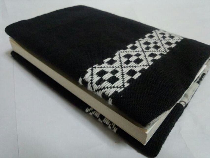 あずみ野木綿に刺し子糸でこぎん刺しを刺したシンプルなブックカバーです。
