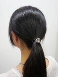 腕輪としても装着できます。付属のヘアゴムは市販のものと付け替え可能です。