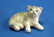 軽量粘土で作った猫さんを白の正絹縮緬でくるみきじとら模様をつけました。