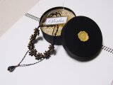 おさえた金色の花びらに黒の縁取りの小花のネックレス。シックさと華やかさを併せ持つ、素敵なデザインでした。おしゃれの幅が広がりそうです。軽さもいいですね。とても気に入りました。また、素敵なアクセサリーを作ってください。