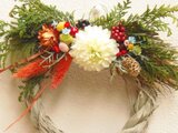 こちらの花材は生の葉っぱ、ドライフラワー、アーティフィシャルフラワーなどミックスアレンジとなっております。