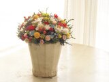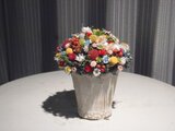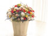 *ゴールドの木の実や赤い小花を盛り込んだかわいい小花のアレンジ*