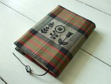 花刺繍の文庫本ブックカバー 綿 黒グレー赤チェック