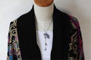扇子で扇がれた桜が舞い踊るイメージをネックレスにしました。