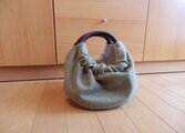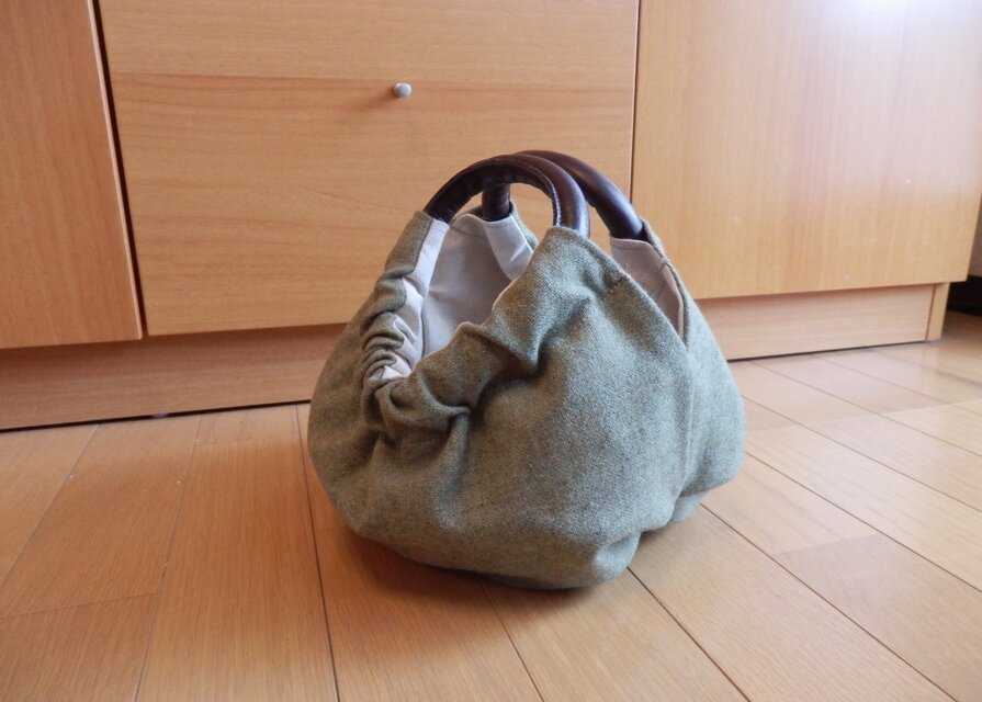 ヨモギ色のふんわりウールのかぼちゃバッグ