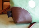 抹茶色の水玉の帆布とあずきのような色の牛革で、ちょっとしたお出かけにぴったりのナナメ掛けショルダーを作りました。