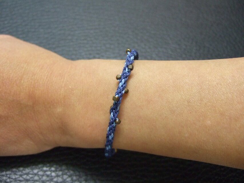 紐が互いにスパイラルする丸組みですが、今回はコバルトブルーにターコイズブルーのドットを入れてみました。