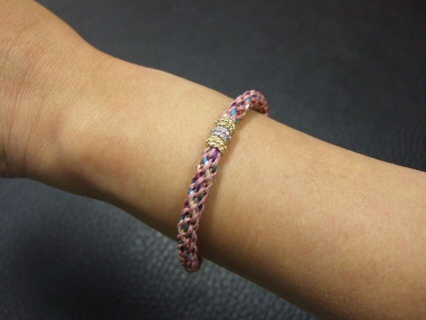 和色を用いたチャクラカラーの組紐ブレスレット【老松組(灰赤紫)】