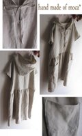 リネン生地を使用した、シンプルな前ヒモリボンフード付きチュニックワンピースです☆