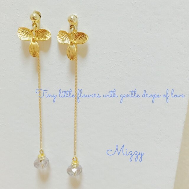 18金でコーティングされた小花のチャームと合わせ、高級感のあるピアスに仕上がりました。