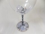本格的ワインを楽しむ大きさのワイングラスに黒と白で描きました。全体を優しく白色を入れて、次にお花をイメージして模様に描き、カッコ良さを出したかったので、白黒でまとめました。仕上げは渕に金彩いたしました。