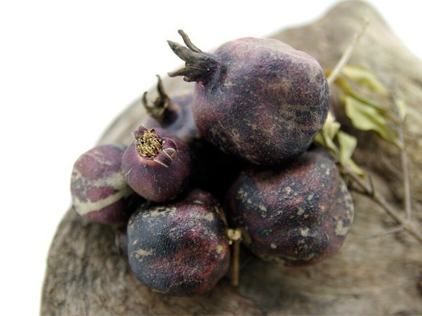 自宅で採取したもので、大きさも大小様々、風合いもそれぞれ違いのある素朴なザクロたち。