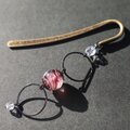 This handmade bookmark features a traditional tonbo-dama (tombo glass beads), made in Japan.
