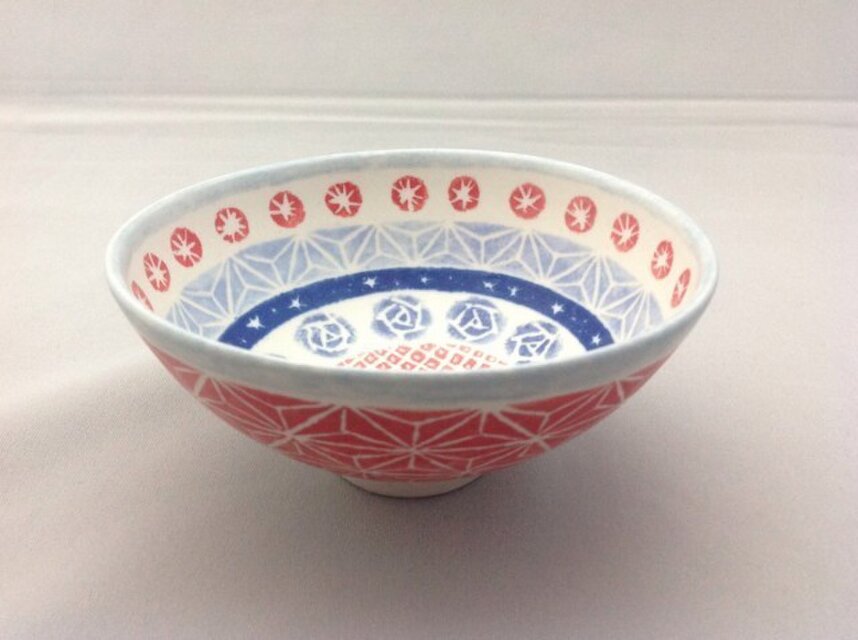 ご飯茶碗くらいのボールです。模様は全て手描きです。可愛くカラフルな器になりました。