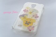 パンジーとバーベナの押し花を使ったスマートフォンのデコレーションケースです。