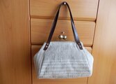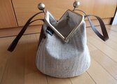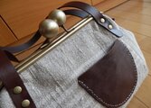 soldoutチェコリネンとレザーの大玉げんこがま口バッグ
