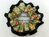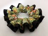 黄緑や黄色、オレンジ色がきれいなリバティソープをブラウンサテンでふちどりしたシュシュです♪ボリューム感は少なめですが、洋服の邪魔をしない適度な大きさです♪