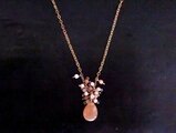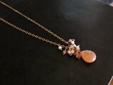 寒い時期だからこそ、暖かな色のものを身につけてもいいな、と思い作りました。オレンジサンストーンは、「太陽の石」という名前ですが、ギラギラというよりは優しい暖かさのオレンジ色です。小さなホワイトオニキスとコーラルをあわせました。後ろにも白とオレンジの小さな粒をぶら下げてかわいらしく。落ち着いたオレンジは肌に馴染む色でおすすめです。