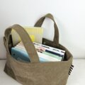ヴィンテージ加工をした帆布のバッグ。