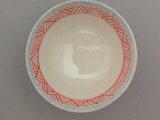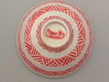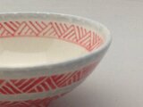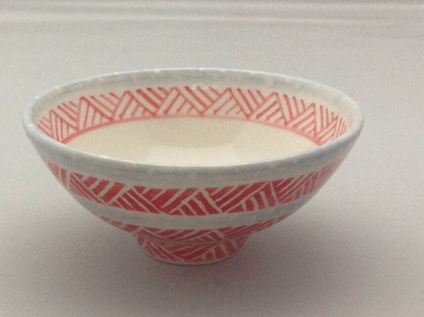磁器の作品です。ロクロで成型し、絵の具で三角模様を絵付けしました。