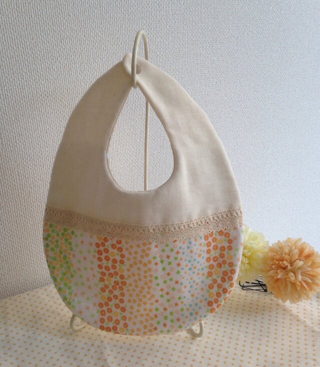 柔らかな花柄とトーションのスタイ(Or)【a】