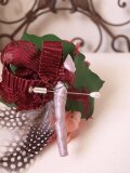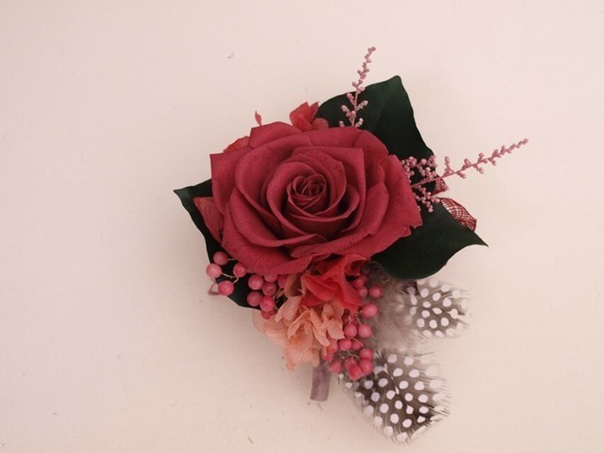大人っぽいチェリーレッド色のプリザーブドフラワーのローズを使用したコサージュです。