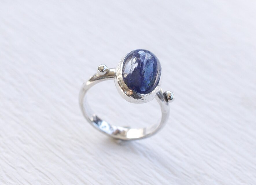 天然石タンザナイトに枠を作製した、1点ものリングです。