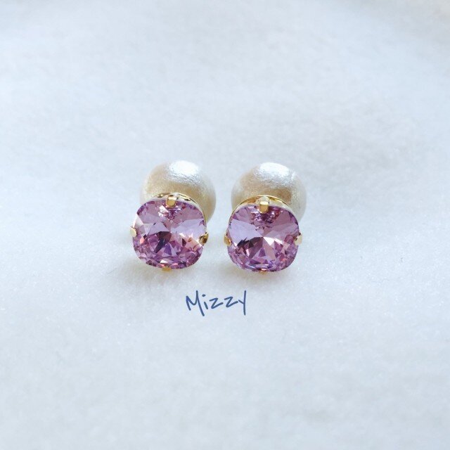 ✳︎スワロフスキーの面と、コットンパールの面、どちらを正面にしても、後ろが主張しすぎない、シンプルなピアスです。