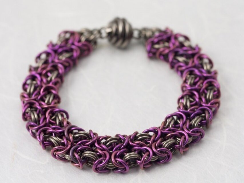 チェーンメイルの定番の"Byzantine"をシート状に編んで作ったブレスレットです。