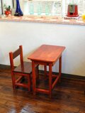 とてもカワイイ小さい木製の、レトロな机と椅子です。