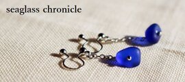 ころんとしたコバルトブルーシーグラスでイヤリングを作りました。