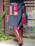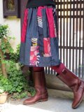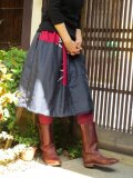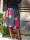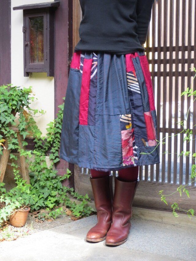 銘仙スカート☆シックな紺地と明るいピンク系でミシンパッチ♪