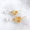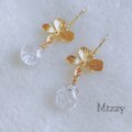 天然石のクラッククォーツとK18GPの小花ピアスです。