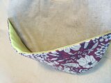 本体は表布に生成りの綿麻(綿85%/麻15%)、裏布にマスタード系のダブルガーゼ、その間の胴体部分に撥水性のある生地をはさんでいます。