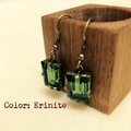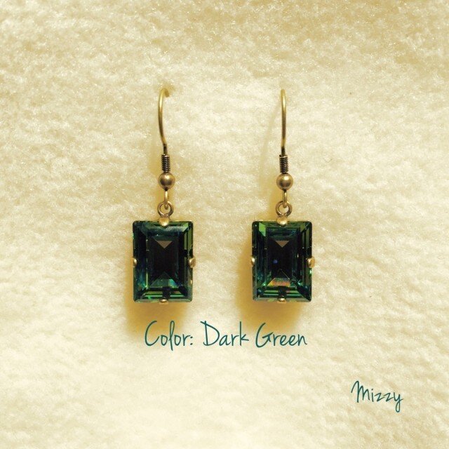 ピアス金具がくすんだゴールドを使用しているので、アンティーク感があり、スワロフスキーのダークグリーンの色味をとても引き立てています。また、大きめのスワロですが、アンティーク感があるので、派手になりすぎず、落ち着きを感じられると思います。