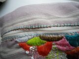 デンマークの蚤の市で購入した生地を刺繍とビーズで彩りました。