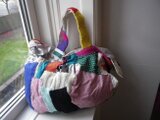 細かな端切れをたくさん貼り付け、パッチワークのバッグを作りました。